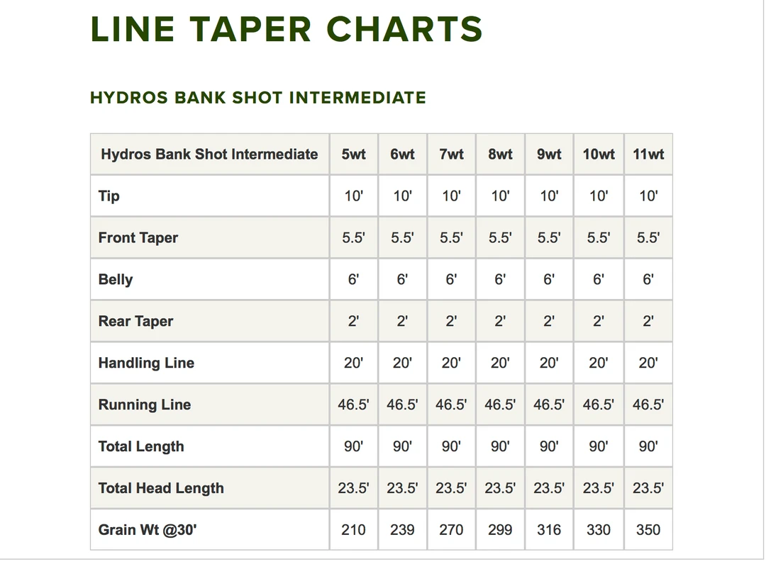 Hydros Bank Shot Intermediate is designed to be a versatile, quick-shooting fly line to handle a multitude of situations. Great for one time casts to a bank, delivering large flies, roll casts, and single hand Spey. This line is powerfully built with a short, heavy head with 8′ intermediate tip with a 1.5 ips sink rate. Loads the rod quickly and reduces the need for false casts. Smooth coated line with AST patented dry-slick technology provides continual line protection and slickness. Dual welded loops for easy, seamless connection to backing and leader. Orvis Line ID for quick and easy identification. Color change at 30′. Pale green sink. Dark willow tip. Orange line. 90′ total length. Line weights 5-11. Made in USA.