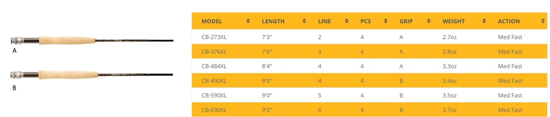| Size | 7'3" 2WT, 7'6" 3WT, 8'4" 4WT, 9' 4WT, 9' 5WT, 9' 6WT |