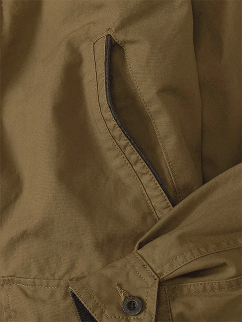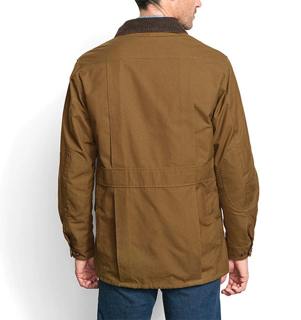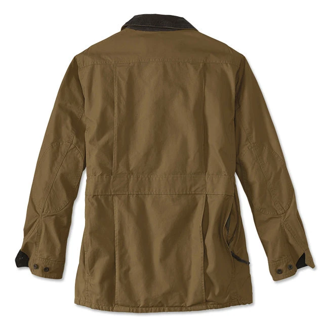 Its forebears hang in a thousand closets and have seen lifetimes in the field. We’ve brought this classic field coat back with subtle updates to become the favorite of yet another generation. Our dry-waxed cotton canvas turns away briars and repels rain. Lower bellows pockets with snap-closure pocket flaps. Two upper slash handwarmer pockets. Gusseted underarm panels with grommets for ventilation. Shooting patches on both shoulders and reinforced elbow patches. Adjustable button cuffs with corduroy trim. Corduroy collar. Rear-entry waterproof game bag with two side zips and interior lining. Bi-swing back for comfort. Full zip front with button-closed storm flap. Two interior pockets. Pure cotton. Spot clean. Imported.