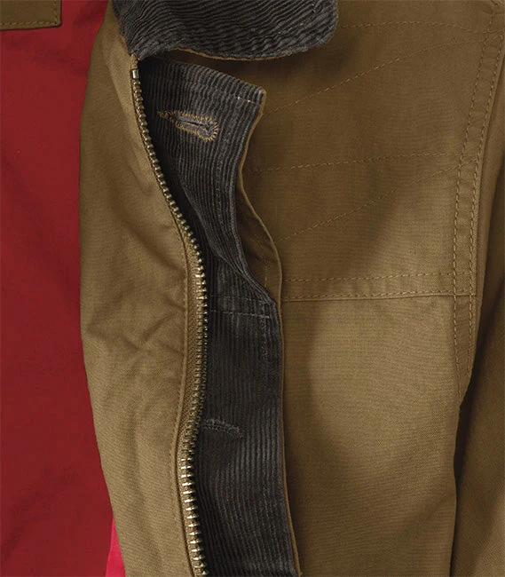 - Adjustable button cuffs with corduroy trim and corduroy collar