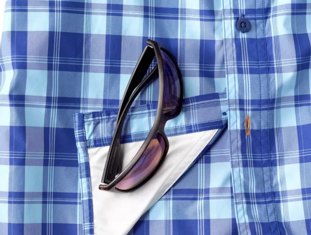 incredibly lightweight, yet rugged, poly/nylon-blend Rainy Bridge Shirt dries quickly, keeps you cool, and protects you from the sun’s harmful rays with a UPF 30 rating. Venting on the front chest for additional cooling; a bias-cut yoke on back for enhanced mobility. Roll-up sleeves let you adjust to stay-in-place short sleeves. With your sunglasses in mind, we added a hidden keeper on the right chest pocket and a hidden cleaner in the hem. Top-entry pockets, one with a security zip to protect your valuables. Active Fit.