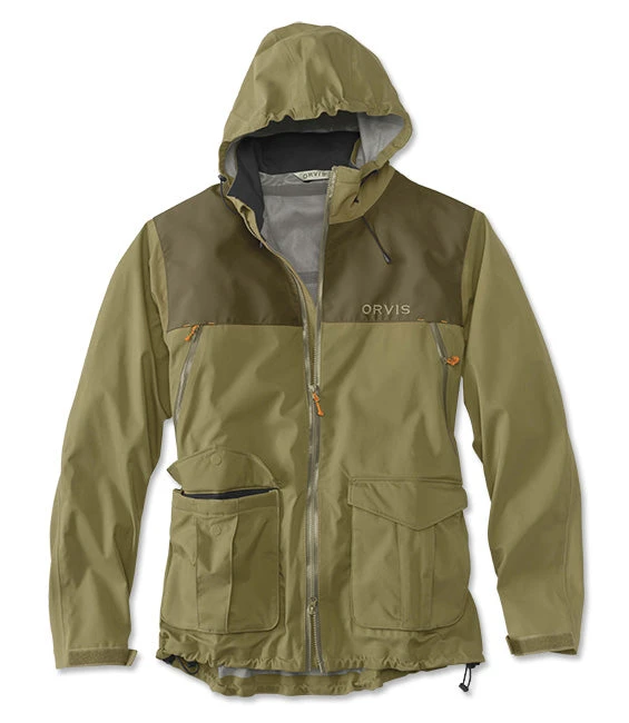 Our toughest, most technical waterproof hunting jacket—in ToughShell—is a first in upland performance. It combines superior protection in cold, wet, windy weather with the durability bird hunters demand. The innovative hard shell fabric is waterproof and windproof, while the breathable two-layer system allows moisture to escape during strenuous activity. Every hunter, no matter the region, will appreciate the protection from the elements, as well as from thorns and briars. Though lightweight, ToughShell fabric is puncture- and tear-resistant, defying the thickest cover. Mechanical stretch fabric on the main body and articulated elbows offers optimal mobility and a comfortable fit. Reinforced with highly abrasion-resistant fabric on lower back sleeve, front, and back yoke. Watertight underarm zipper for ventilation. Soft, brushed tricot interior for a warm feel. Features include traditional styling, waterproof zippers, a clean design to accommodate a vest, generous pockets with magnetic closures, zippered handwarmer pockets underneath shell pockets, and an adjustable hood. The hidden, extremely low-profile game bag is designed to lay flat when not needed, such as when wearing a vest, but can expand for those hunts when you need to carry harvested game. 240 sq. in. of blaze orange. Nylon. Washable. Imported.