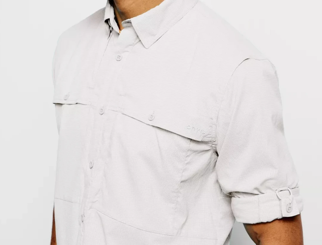Lighter, softer, and with UPF 40 sun protection, the Long-Sleeved Open Air Caster is an update to our popular fishing shirt, keeping everything you love and now with a new eco-conscious stretch fabric and strategic ventilation. Quick drying and incredibly lightweight, our Open Air Caster features thermoregulating MarinoWul+™ made with recycled plastic bottles and crushed oyster shells for earth-friendly performance, and is treated with OutSmart® Fresh odor control to keep you feeling fresh for more time on the water (and less laundry). New, low-profile ventilation is thoughtfully placed to add extra airflow where it’s needed at the back shoulders, arm holes, and chest. UPF 40 sun protection fends off harmful rays with an extended collar stand and slightly articulated cuffs for extra coverage at the back of the neck and hands. Roll-tab long sleeves convert to short for when the day heats up, and two drop-in front pockets keep small essentials handy with a hidden bungee sunglasses/tool keeper in the right pocket. A zippered chest pocket adds secure storage. Finished with a concealed button-down collar that lays flat in the wind, button-adjustable cuffs, and a hidden sunglasses cleaner in the hem. Active Fit.