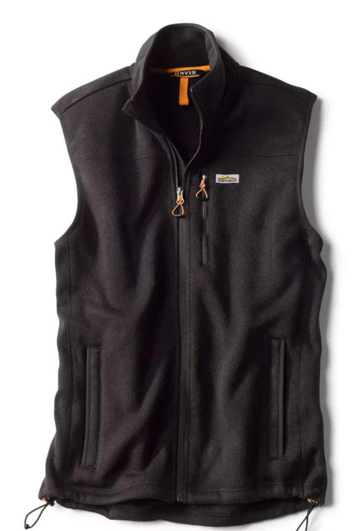 lightweight fleece vest, with soft-brushed fleece interior and sweater-knit exterior, expertly blends technical properties with sweater style. Sustainably made of recycled polyester from PET bottles in a bluesign®-certified factory, this comfortable, durable fleece won’t pill or weigh you down. Three zippered pockets provide secure storage for small essentials. Shaped hem with draw cord. Zip front. Active fit.