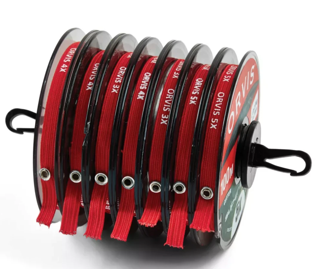Holds up to seven Orvis tippet spools with both vertical and horizontal attachment options. Great addition to any pack, vest, or sling pack. In black.