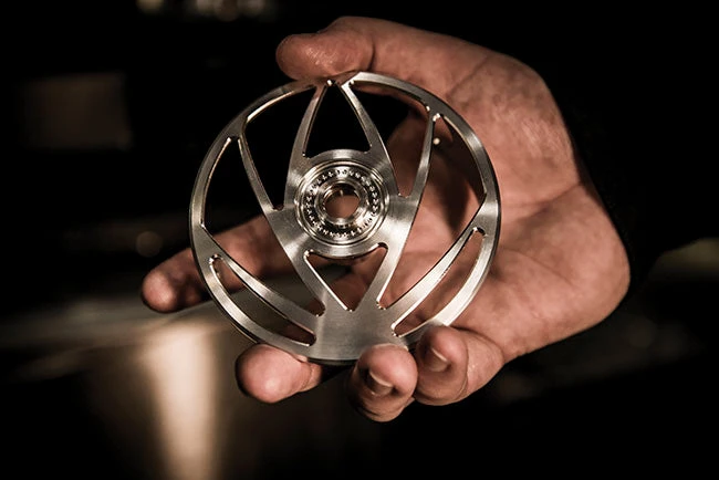 A technologically superior reel conceived and designed from the ground up and built in New England by American craftsmen to battle angry fish and laugh in the face of corrosive saltwater environments. The Mirage features a sealed and maintenance-free carbon and stainless steel disc drag system with an aggressive knurled drag knob that goes from zero to full drag in a single drag knob rotation. Patent-pending ball and ramp drag mechanism provides a smooth turning drag that follows a non-linear curve as the drag knob is turned to give smoother adjustments in the fishing and fish-fighting range. The reel is a super large arbor for increased retrieve rates and reduction in line coil. Machined in the USA from strong, yet lightweight 6061 T6 aluminum barstock. Ergonomically designed machined aluminum handle. Quick release spool easily converts from left to right-hand retrieve. Military-spec type III hard coat anodizing. Titanium shaft adds strength without additional weight. Fully radiused reel foot prevents kinked leaders. Low-profile counterweight won’t catch fingers or fly lines. In pewter, midnight black.